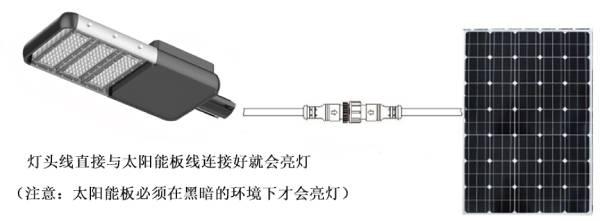●當燈(deng)(deng)頭與太陽能板連接好,則(ze)燈(deng)(deng)會自動運行(xing),夜晚自動亮燈(deng)(deng),白天自動關燈(deng)(deng)