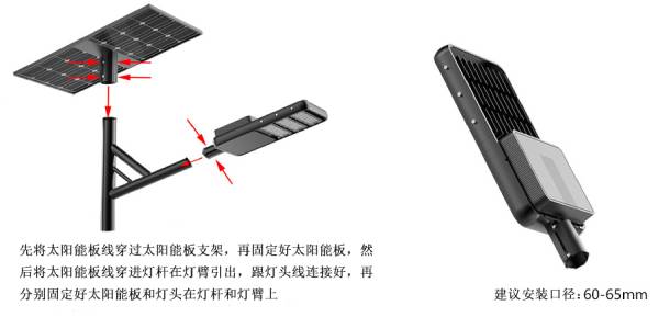 溫馨提示::安裝前請自行準備好太陽能支架,燈臂,燈桿等