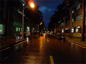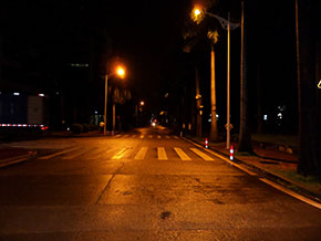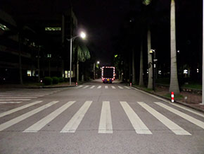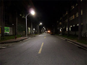 80W LED路燈代替原有250W高(gao)壓鈉燈,共計(ji)5盞(zhan),桿高6米,桿距20米,路面平均(jun)照度比原來用高(gao)壓(ya)鈉(na)燈照度高(gao)出12 lx。