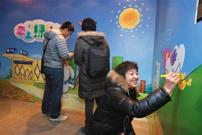 昨日,地鐵4號線菜市口站,市民用自己心儀的色彩完成“愛單車、愛地鐵、愛步行”的低碳畫。新京報記者 侯少卿 攝